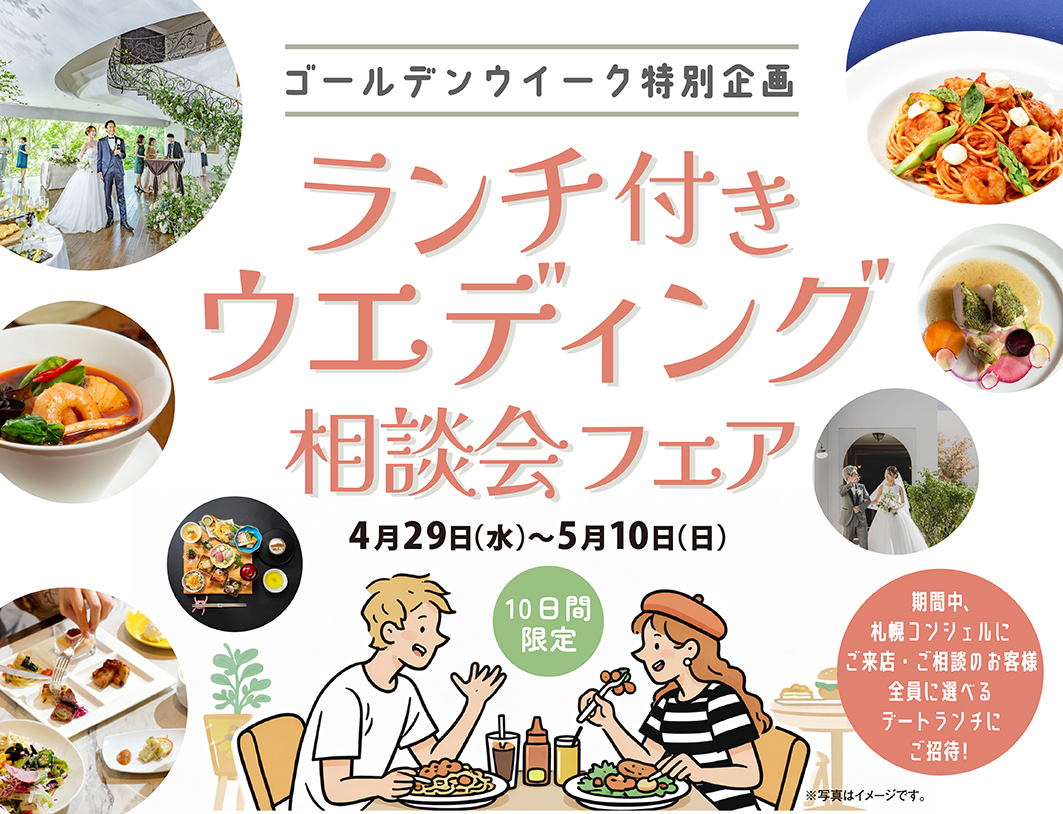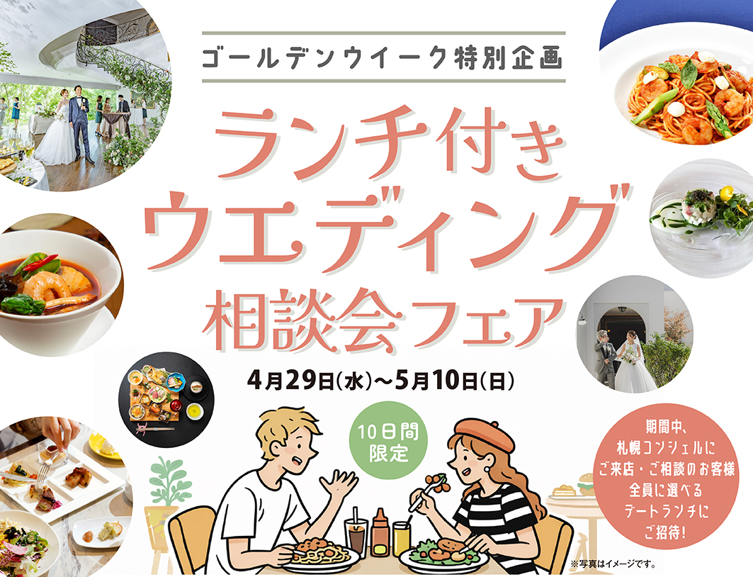 指輪やドレス・住宅など、限定プランを多数ご用意。花嫁様に好評の「ウェディングレッスン」にもご注目を!