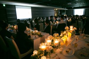 例えば『新婦のお色直しドレスは何色か?』というクイズで、通常は事前にカードが配られ当たった人に入浴剤をプレゼント!という個人戦ですが、それをテーブル対抗にします。二人が中座中に司会者からゲームの説明と景品が華々しく登場。当たったテーブルのゲスト全員に景品をプレゼント♪