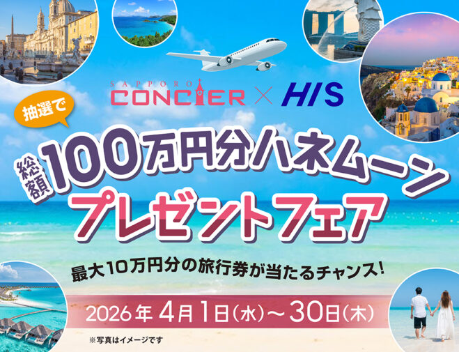応募条件:2026年5月15日(水)までに札幌コンシェルにてご成約のカップルの中から抽選でプレゼント!