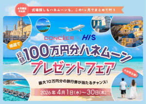 5月15日(金)迄にご成約されたカップルの皆様の中から抽選で最大10万円分の旅行券をプレゼント!