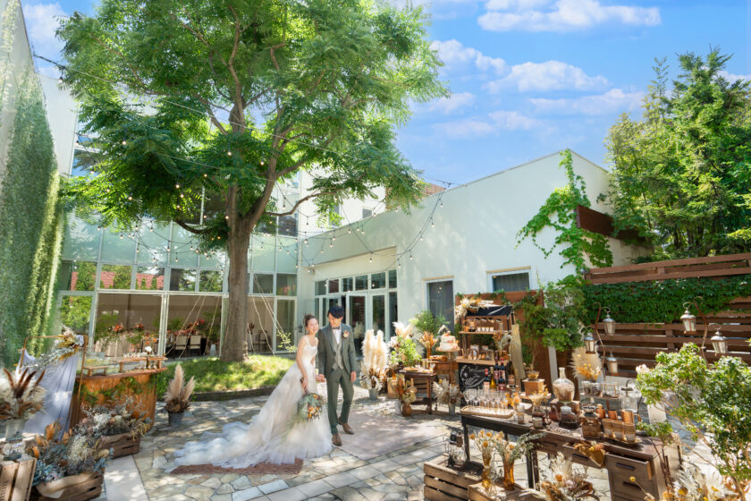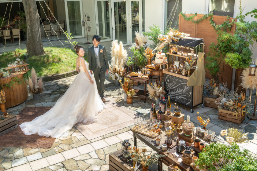 パーティー会場併設のお庭を開放して過ごすアットホームで楽しい時間!ガーデンバーベキューやデザートブッフェ、多彩なフードオプションでゲストへのサプライズ感も増す演出を