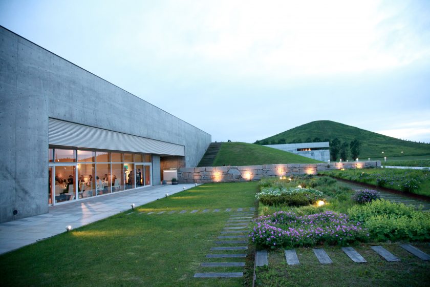 札幌郊外にあるイサムノグチデザインの公園内にあるフレンチレストラン。道産素材にこだわったシェフの出来立てのお料理が、オープンキッチンから運ばれます。