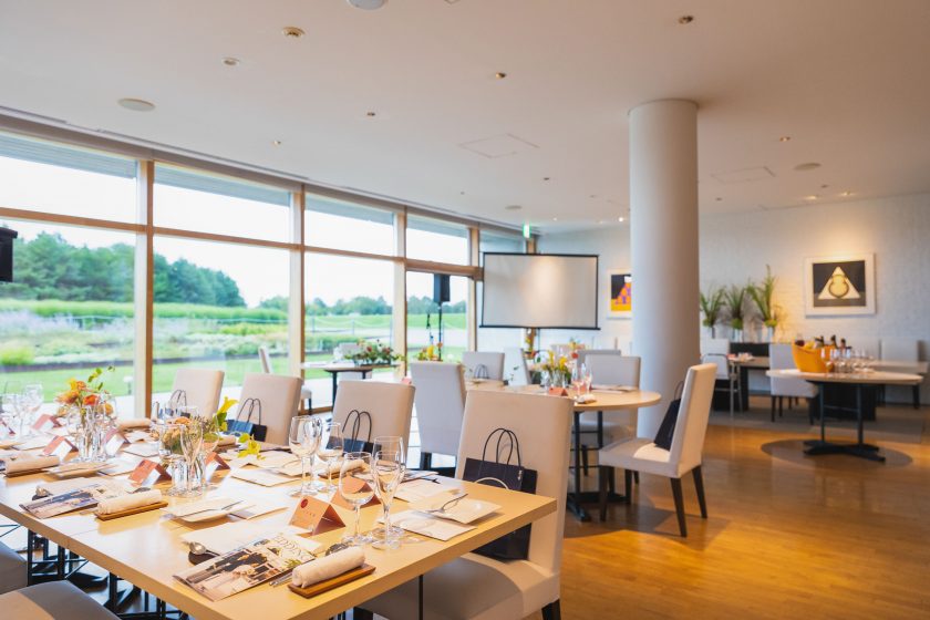 「ランファン・キ・レーヴ」は(夢見る少年)そのものの小玉シェフが率いるオープンキッチンのレストラン。北海道の食材をフルに引き立てる料理は、ゲストに感動を届けます。白を基調にしたさわやかなインテリアも、新郎新婦を引き立てます。20名~50名までは貸し切りできます。