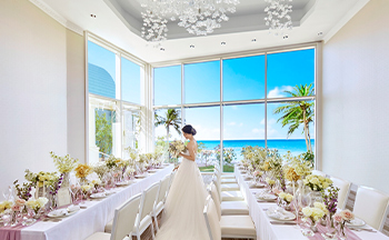 海と空を一面に染めるブルーを、純白に輝く空間に招き入れたような、ビーチフロントの素晴らしい眺望がおふたりと大切なゲストをお迎えします。