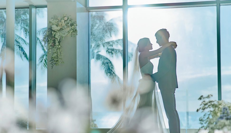 海と空を一面に染めるブルーを、純白に輝く空間に招き入れたような、ビーチフロントの素晴らしい眺望がおふたりと大切なゲストをお迎えします。