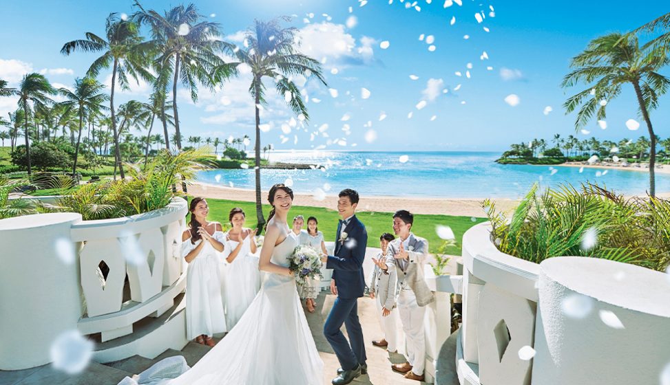 そこは、かつてハワイ王室の保養地だったオアフ島屈指のロイヤルリゾートの中でも、オン・ザ・ビーチという特別なロケーション。その名前は「喜びの結晶」を表わし、ブリリアントホワイトの透きとおるような純白が、ふたりのウェディングを、忘れられないものにしてくれます。