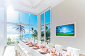 完全個室のバンケットは、チャペルに併設されている専用会場。ビーチフロントの素晴らしい眺望がおふたりと大切なゲストをお迎えします。