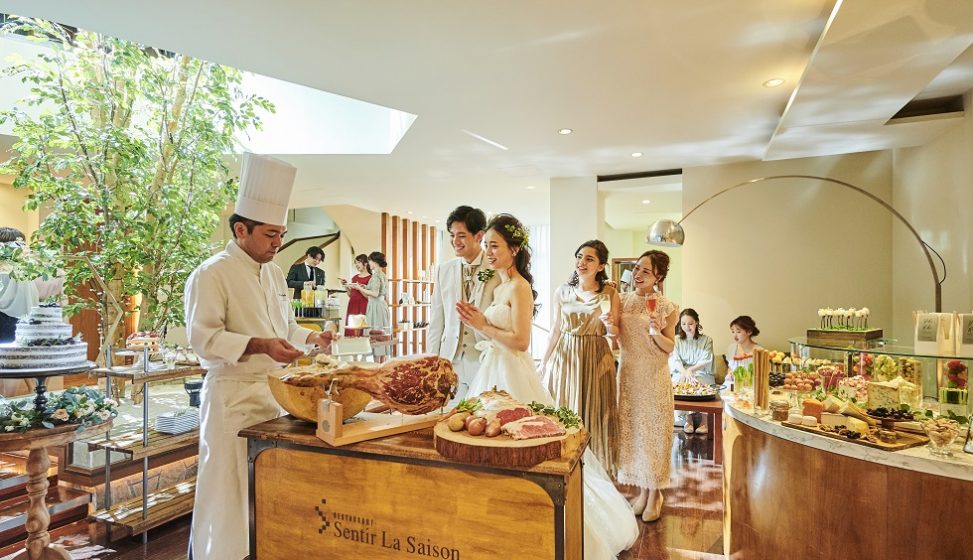 地下鉄中島公園駅から徒歩90秒にあるセンティール・ラ・セゾン。「ようこそふたりの我が家へ」をコンセプトに、旬の厳選食材で彩る美食を堪能しながら、会話を楽しむパーティを提案する。ここでは一軒家を貸切り、家族や友人などゲストとの距離が近いプライベートウエディングが実現。感謝の想いが一人ひとりにしっかり伝わるように、招待人数を68名までに限定している。工夫が施された邸宅の造りも魅力。ウエルカムパーティを楽しむ1階リビングルームとメインパーティを行う2階ダイニングルームが吹き抜けになっているので、どこにいてもみんなの声が響き、一体感を感じながら過ごすことができる