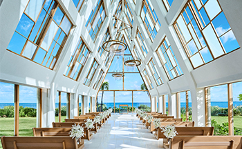 琉球ガラスのシャンデリアと自然が包み込む絶景チャペル