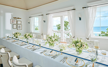 チャペルのすぐ隣に建つのは、海辺の別荘を思わせる居心地の良いテラス付きのプライベート邸宅。まるでリビングでくつろいでいるかのような和やかな時間は、ご両家の距離をぐっと近づけます。