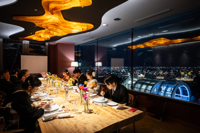 大倉山に佇むフレンチレストラン。開放的な窓の向こうに広がるのは、札幌の街並みと自然が織りなす美しい風景。空間は白や木目が基調となっており、カジュアルでありながら上品さも漂う美しい設えです。カジュアルさを求めつつも、しっかりとおもてなしをしたいおふたりにピッタリ。