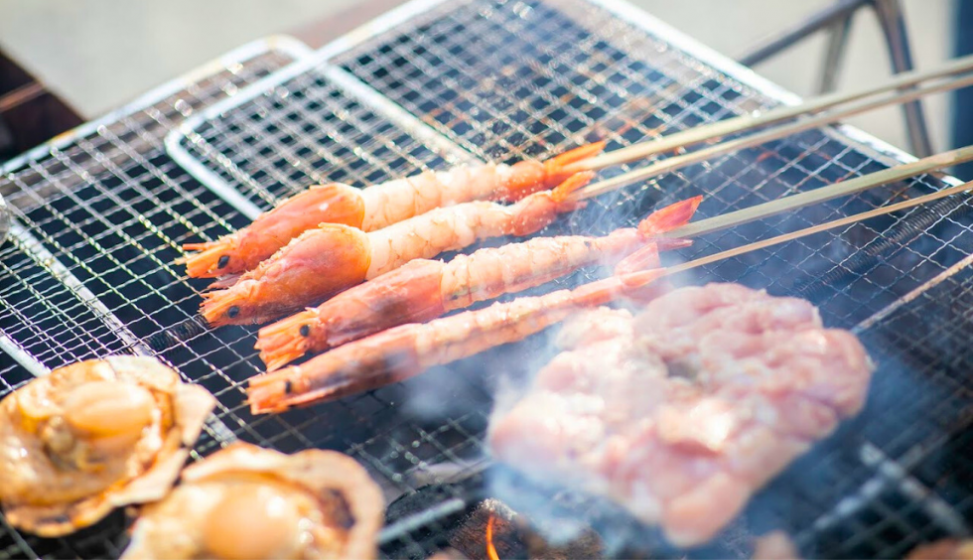 「海の幸山の幸」を目の前で炭火焼でおもてなし