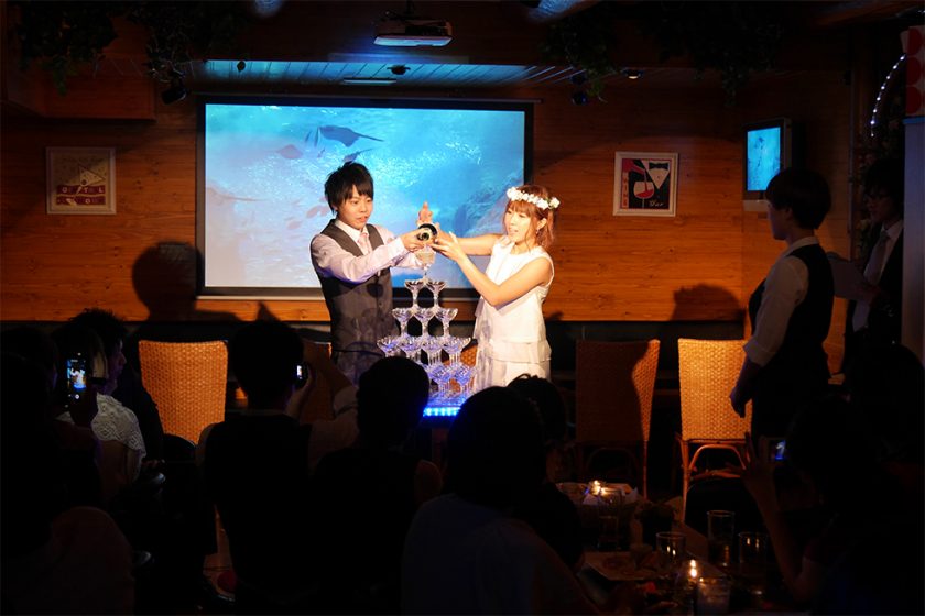 二次会ご利用のお二人にWOOD HOUSEから楽しいアトラクションのブライダルサングリアをご用意!きっと素敵な想い出に!ゲストの方も盛り上がっていただけるはず。打合せ時に内容をご相談させていただきます。