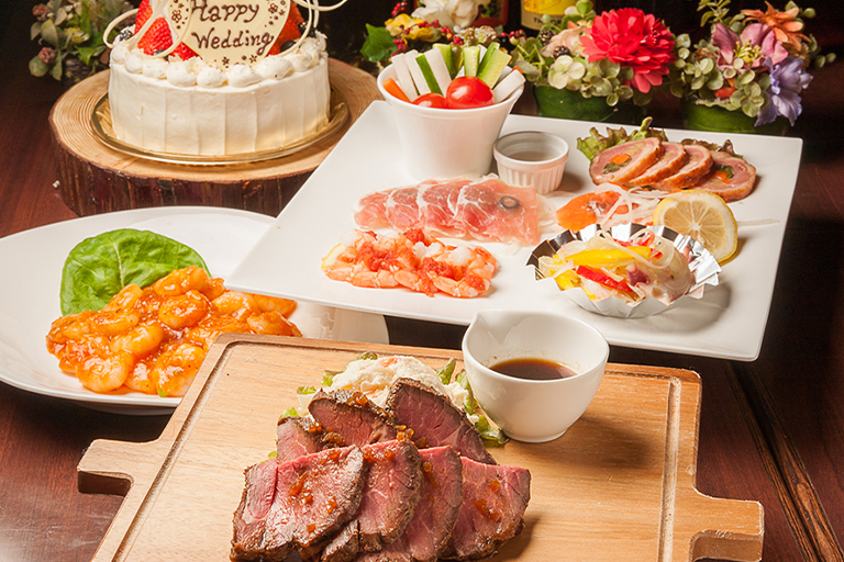 落ちつきある木目を基調とした店内はゆったりくつろげるパーティーに最適です。新しい一歩を踏み出すお二人へ『WOOD HOUSE』から嬉しいプレゼントが満載!100枚以上の写真撮りや楽しいアトラクションなど魅力も充実。大型スクリーンやシャンパンタワーの演出も人気です。パーティースペースは最大50名と80名様までの2タイプをご用意、ゲストとともに幸せなひときを・・・