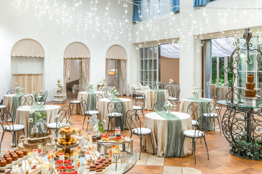 ぼんやりとした憧れ。言葉にできない、でも大切な想い。そんなおふたりらしさをカタチにしたいのがピエトラセレーナの結婚式です。おとぎ話に出てくるかのような螺旋階段から始まるパーティは、食事をゆったりと楽しむことが出来るダイニングルームと、まるでお菓子の家のような50種類以上のデザートで埋め尽くされた「デザートルーム」の二部屋を贅沢に使って楽しむことができます。そんなピエトラでは、ずっと座ったまま結婚式が終わるのではなく、ゲストと会話や演出を一緒に満喫することが出来ます。演出の一つとして、多才なスタッフによるパフォーマンスが魅力的で、たくさんのゲストの「来てよかった」「楽しかった!」という声を自然と聞くことのできる結婚式場です。