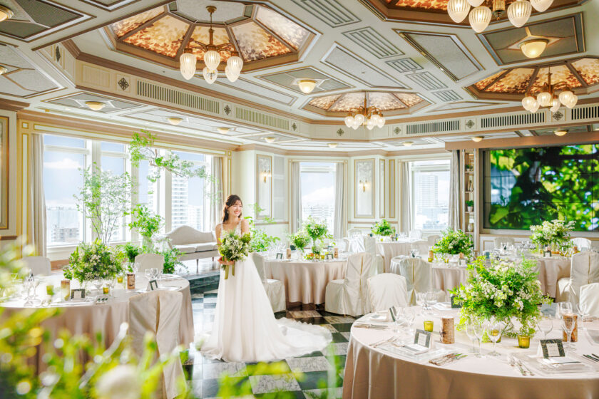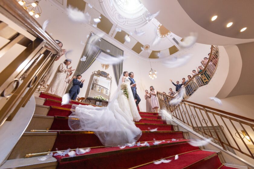 まるでお城をイメージしたかのような豪奢な会場が人数によって選べる女子力の高い可愛らしいホテル。一歩足を踏み入れるだけでそれが感じられるので、自分が異国のお姫様のように感じられるかも知れません。また階段がある会場もありますので、入退場やサプライズなどでゲストの方を驚かせる演出としても人気があります。他にも神前が他ホテルではないような立派な挙式場の為、和装での挙式を移動無しで行いたい方達にはとてもオススメがしやすいです。