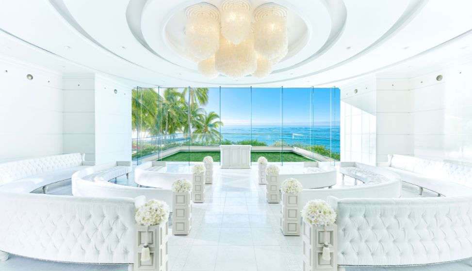 ワイキキ上空から海とダイヤモンドヘッドを望む、絶景チャペル